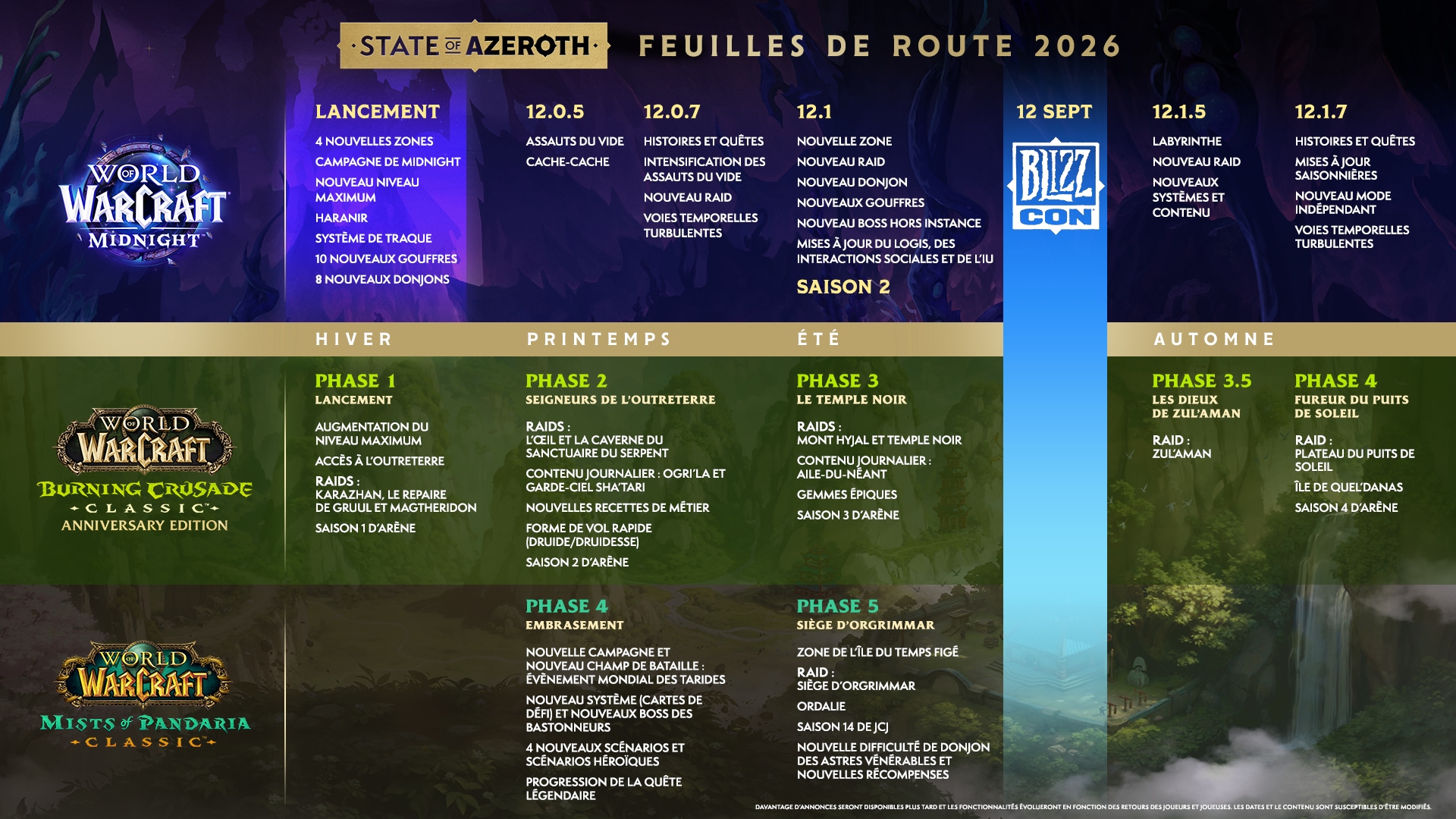 Nous souhaitons vous en dire un peu plus sur ce que nous préparons pour World of Warcraft en ce moment, le contenu actuel, la sortie très proche de Midnight, mais aussi vous donner un petit aperçu des plus grosses annonces prévues pour 2026. Nous ne pouvons malheureusement pas trop entrer dans les détails, car il serait dommage de vous révéler certains éléments de l’histoire si tôt… Nous préférons garder quelques surprises pour plus tard. Mais beaucoup de choses vous attendent sur Azeroth cette année.